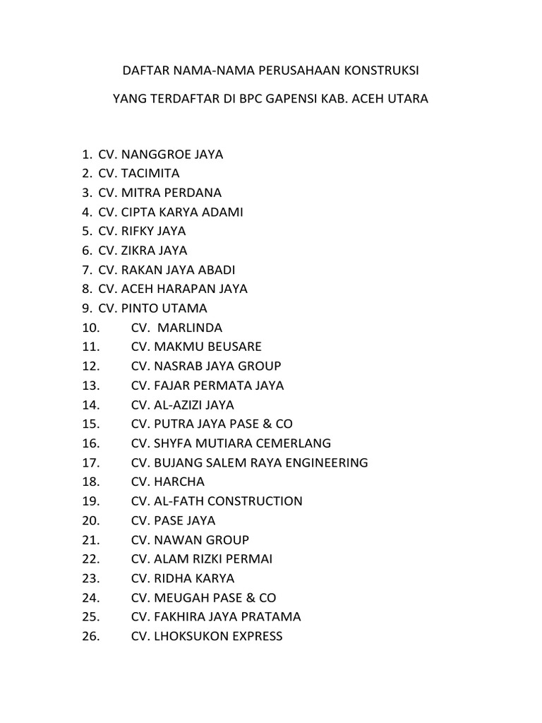 322 Kumpulan Contoh Nama Cv Kontraktor Yang Bagus Primbon88